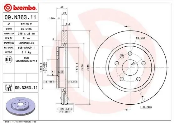 Автозапчастина BREMBO 09.N363.11