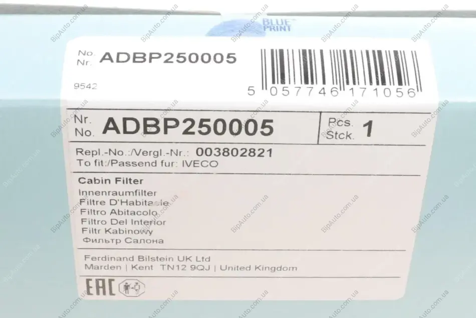 Аналоги "ADBP250005 BLUE PRINT":