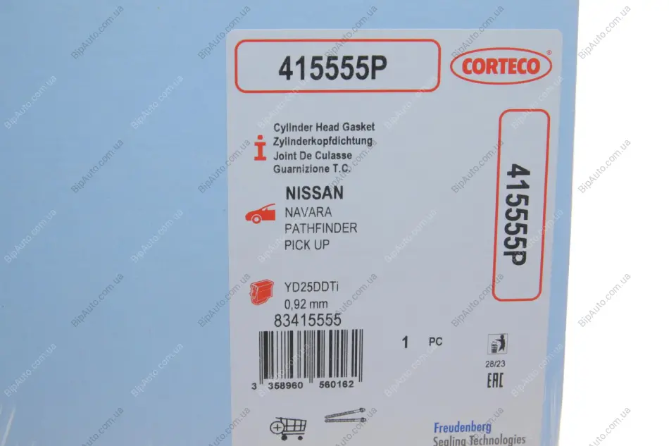 Прокладка ГБЦ Nissan Pathfinder 2.5 dCi 05- (0.92mm) (2 мітки) CORTECO 415555P