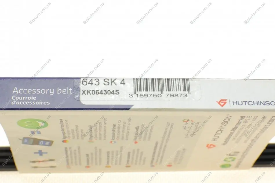 Ремінь генератора Opel Astra J/Insignia A 1.6/1.8 08-17/Alfa Romeo 159 1.8MPI 05-11 HUTCHINSON 643 SK 4