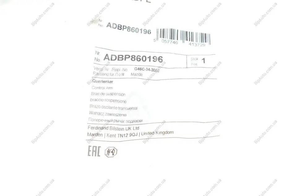 Важіль підвіски (передній/знизу) (R) Mazda 6 12-/CX-5 11- BLUE PRINT ADBP860196