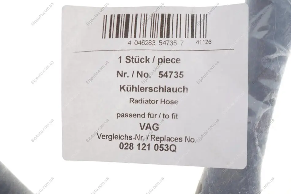Патрубок системи охолодження VW Golf III/Jetta III 1.9D/1.9TDI 91-10 AIC 54735