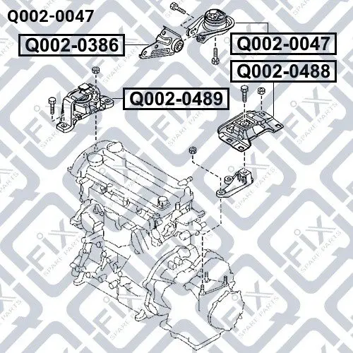 Подушка двигуна задня Mazda 3 1.3/1.6 (BK) 2003-2008/Volvo C30, C70 II, S40 II, V50/Ford C-Max, Focu Q-FIX Q0020047