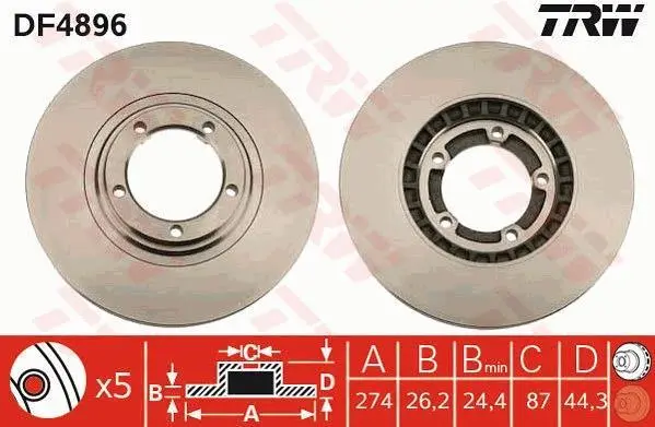 Диск гальмівний передн Лів/Прав (лакірован високовуглецева) HYUNDAI H-1, H-1 / STAREX, H-1 CARGO, H-1 TRAVEL, H100 2.4/2.5D 03.01- TRW DF4896