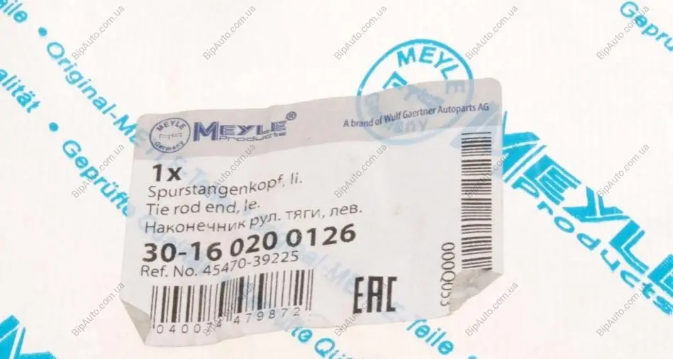 Наконечник поперечной рулевой тяги MEYLE 30160200126
