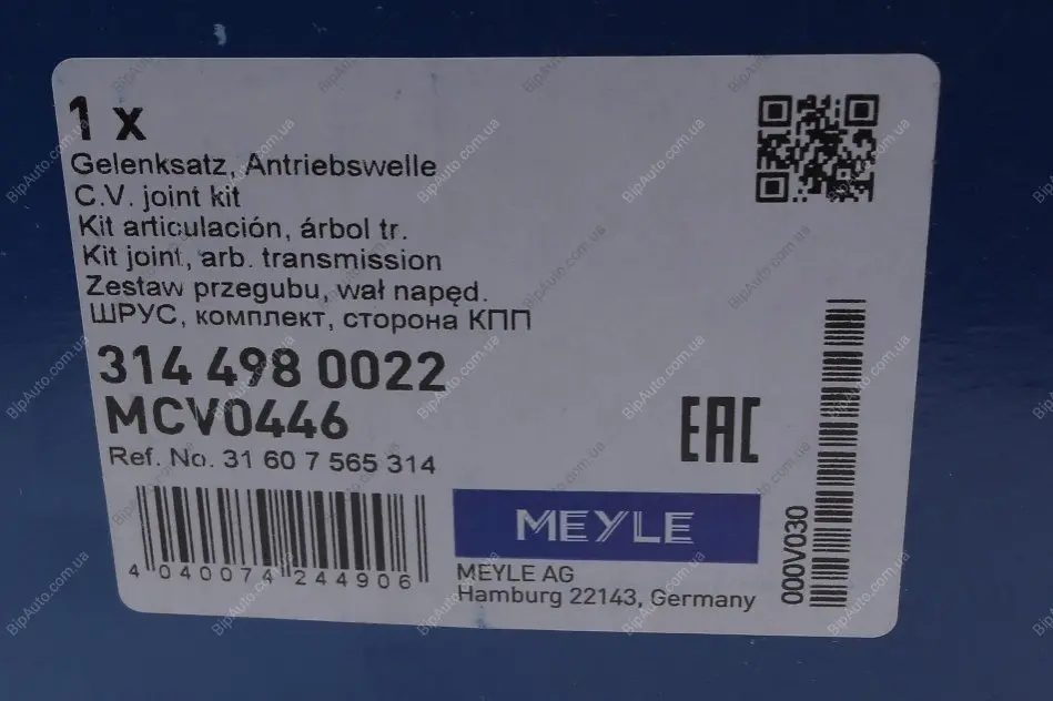 Напіввісь BMW 314 498 0022 MEYLE 3144980022