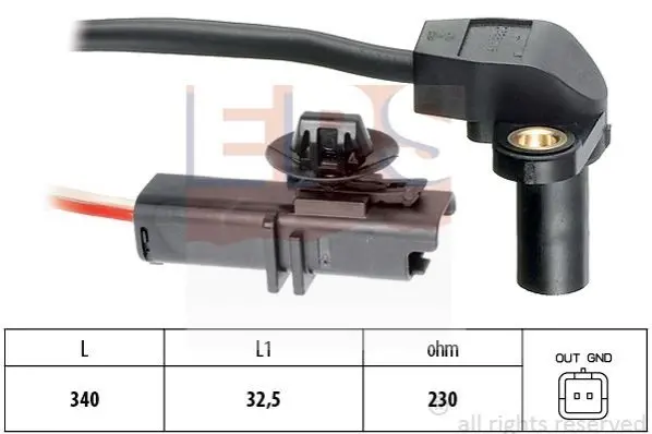 Датчик імпульсів; Датчик імпульсів, маховик; Датчик частоти обертання, керування двигуном; Датчик, положення розподільчого валу; Датчик частоти обертання, автоматична коробка передач 1.953.549 EPS 1953549