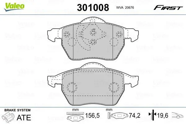 Комплект гальмівних колодок, дискове гальмо Valeo 301008