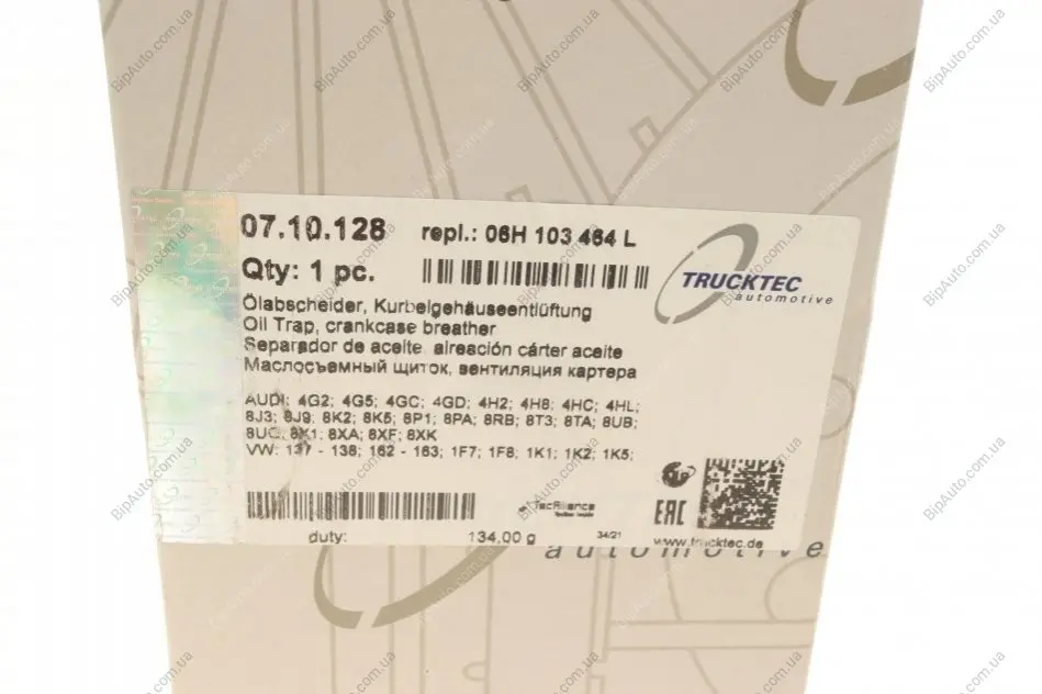 Сепаратор (мастиловіддільник) VW Golf V/VI/Passat 1.8/2.0 TSI/FSI 04-14 AUTOMOTIVE TRUCKTEC 07.10.128