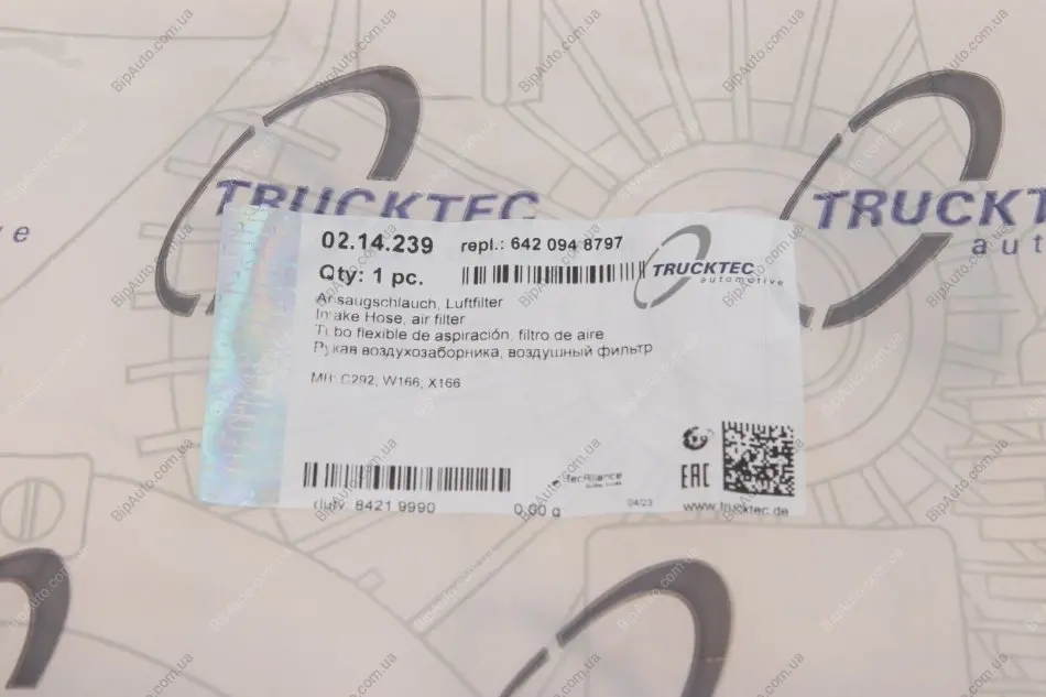 Патрубок повітряний AUTOMOTIVE TRUCKTEC 02.14.239