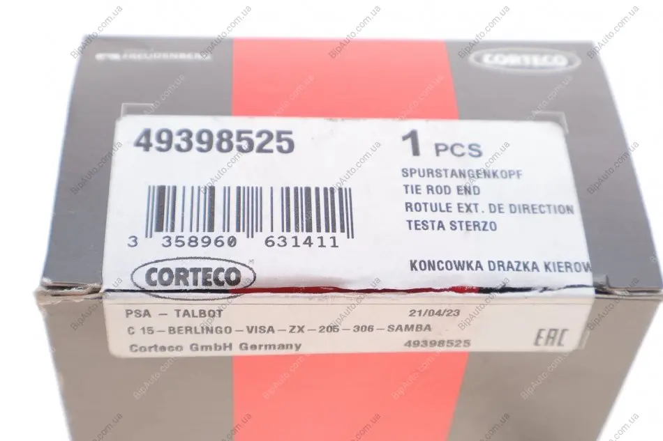 Наконечник тяги рульової Citroen Berlingo/Peugeot Partner 96-08 CORTECO 49398525