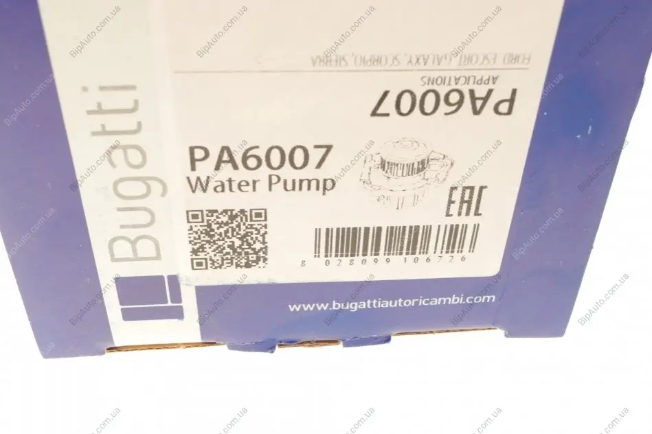 Помпа води Ford Escort VI/VII/Scorpio I/II/Sierra II 2.0i/2.0 16V/RS2000 87-06 (R/B) (8 лоп.) BUGATTI PA6007