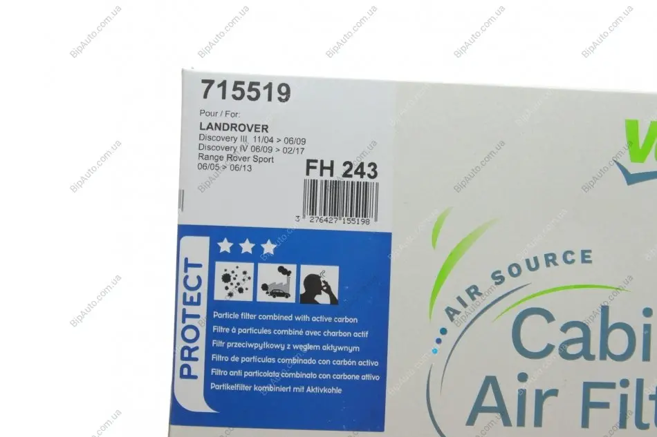 Фільтр салону Land Rover Discovery 04-/Range Rover Sport 3.0-5.0 05- (вугільний) Valeo 715519