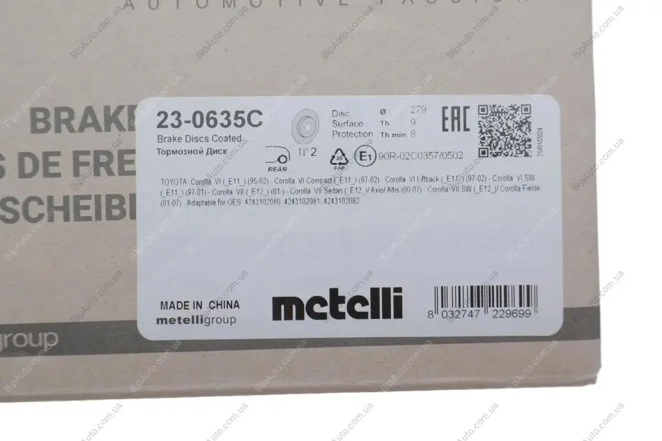 Диск гальмівний (задній) Toyota Corolla 00-18 (279x9) (з покриттям) (повний) Metelli 23-0635C