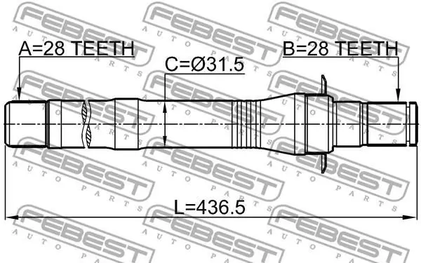Полуось правая 28x436.8x28 FEBEST 1212CM10MT4WD