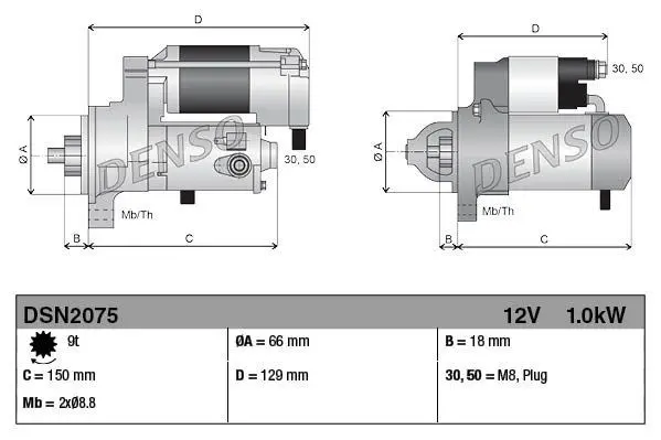 Стартер (12В, 1кВт, кількість зубів 9 шт, новий із заставою) KUBOTA DENSO DSN2075