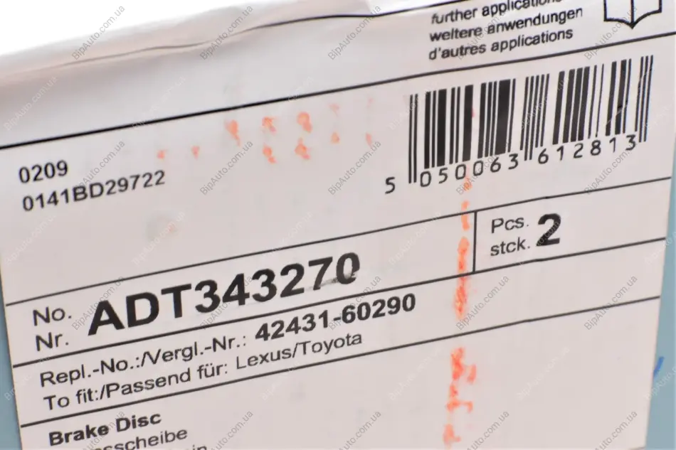 Диск гальмівний BLUE PRINT ADT343270