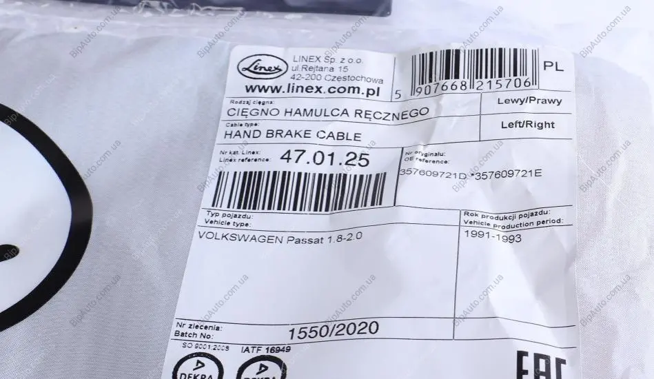 Трос ручного гальма 47.01.25 LINEX 470125